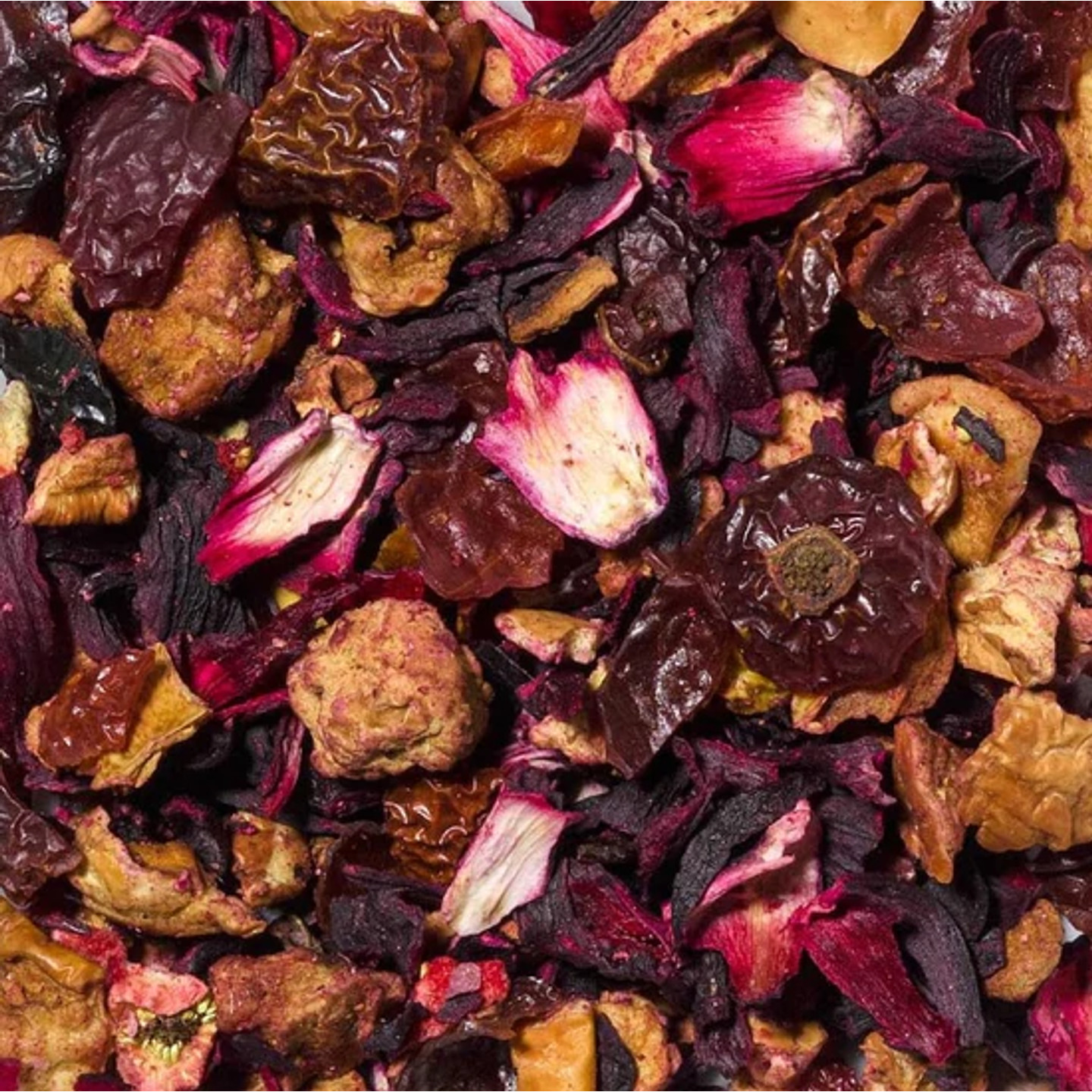 Összetevők: Hibiszkusz, almadarabok, csipkebogyó héja, szamócadarabok (3%), aroma